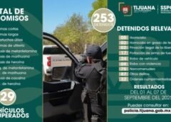 Tijuana, Baja California a 8 de septiembre de 2025.- En un esfuerzo continuo por salvaguardar la seguridad y bienestar de la población, la Secretaría de Seguridad y Protección Ciudadana Municipal (SSPCM), ha reportado logros significativos en materia de prevención del delito durante la semana del 1 y el 7 de septiembre. En este periodo, fueron detenidas 253 personas señaladas como presuntas responsables de diversos delitos, así como el decomiso de 19 armas de fuego y múltiples sustancias prohibidas. Bajo la firme instrucción del Presidente Municipal, Ismael Burgueño Ruiz, quien ha…