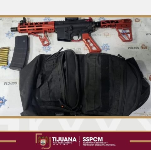 Tijuana, Baja California, a 8 de septiembre de 2025.- Como resultado de los recorridos de vigilancia que realizan los agentes de la Policía Municipal, fue detenido un hombre en posesión de un arma de fuego tipo fusil AR-15, acción que contribuye a reducir riesgos y mantener la seguridad en las colonias de la ciudad.